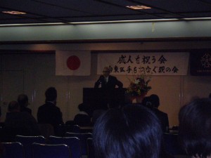 さて、毎年恒例の 「新成人を祝う会」 が浅草公会堂にて盛大に開催。