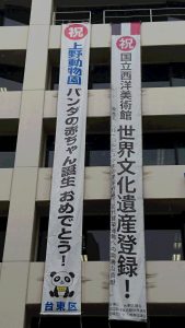 早速、台東区役所では赤ちゃんパンダ誕生の、のぼり旗が掲げられました。
