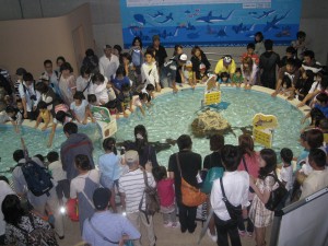 これha、子どもたちがサメとエイに直接触れるということで、大変な混雑でした。