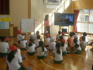 校長室にて最初、挨拶等あり実際に体育の授業と算数の授業を視察しました。