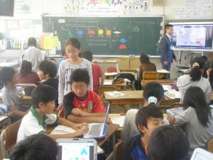 佐賀市では先進的に電子黒板やコンピューター等、利用した『ICT利活用教育』である