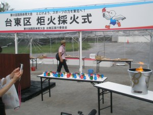 「炬火」はオリンピックの「聖火」にあたるそうです。9月28日「味の素スタジアム」で開催される国体の総合開会式で、各市区町村で採火された「炬火」を集めて一つの火にする「炬火集火式」が行われ、炬火台に点火されます。