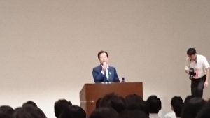 「常在戦場である。勝てるときに総選挙だ、解散がいつあるかわからない。いつでも来いという心構えでいてほしい。議員力をアップさせる。特にネットワークを生かした政策実現力をアップさせることだ」等、挨拶がありました。