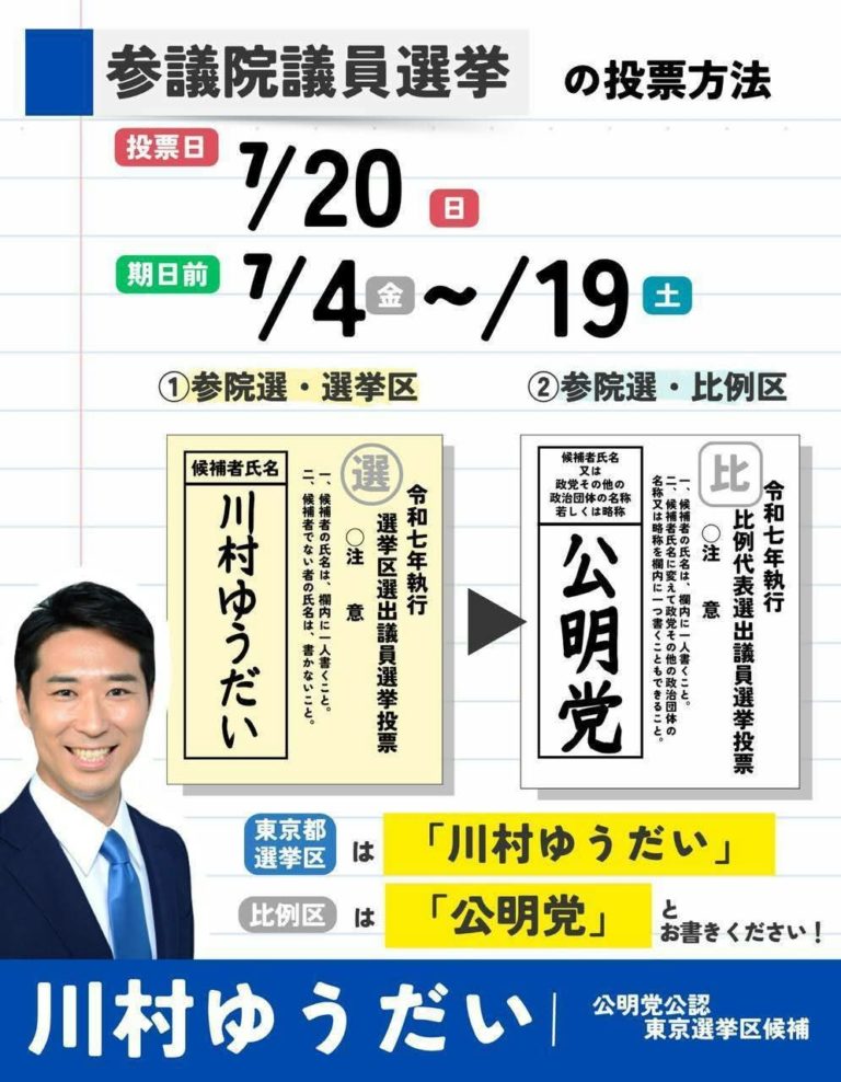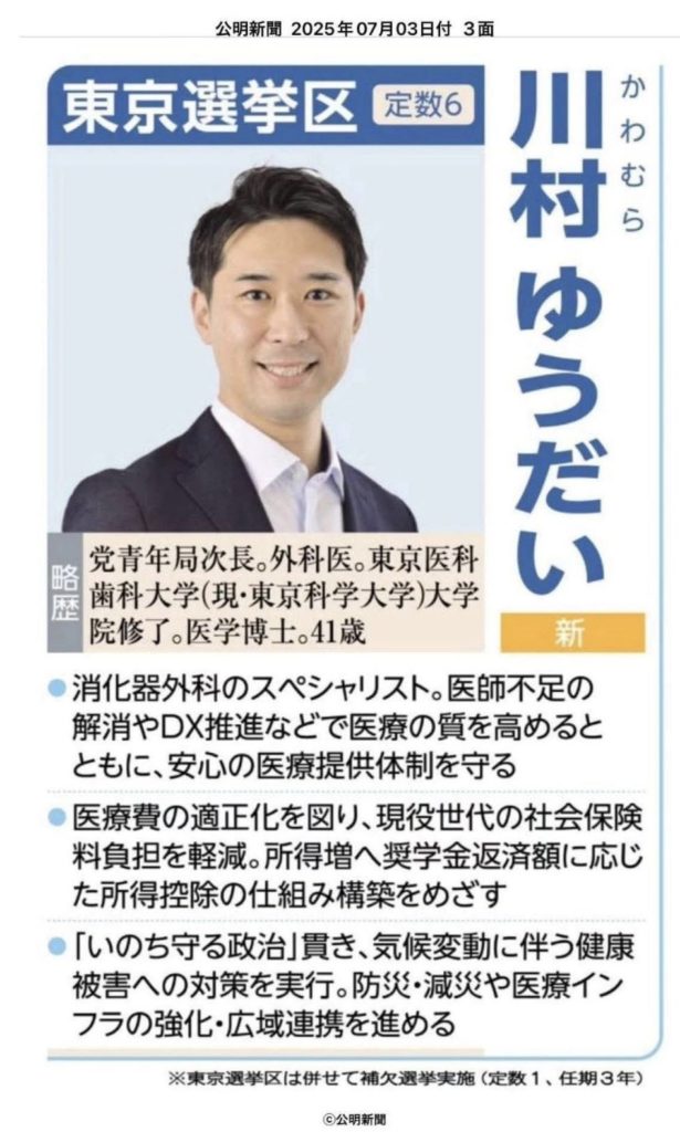 東京選挙区は川村ゆうだい