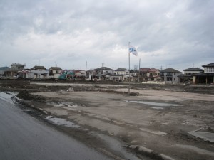 がれき撤収の人がいるだけで、歩行者の姿は見かけることはありません。