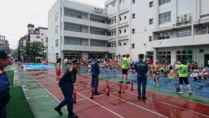 土曜日の午前中は、東泉小学校のレクレーション大会があり、消防団として出動しました。